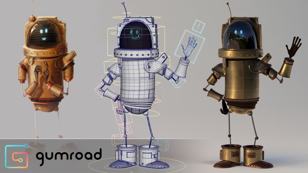 The Concept Art was made by Alex Blain, the Modelling and the Rigging was done by me and Jacques Leyreloup has done the Texturing/Shading.